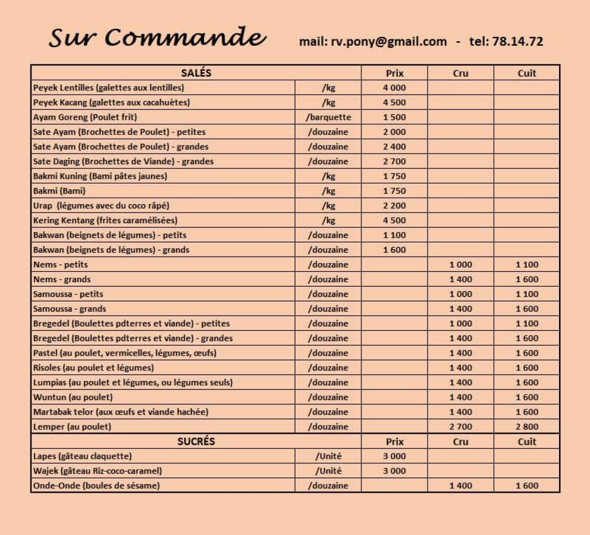 Horaires :